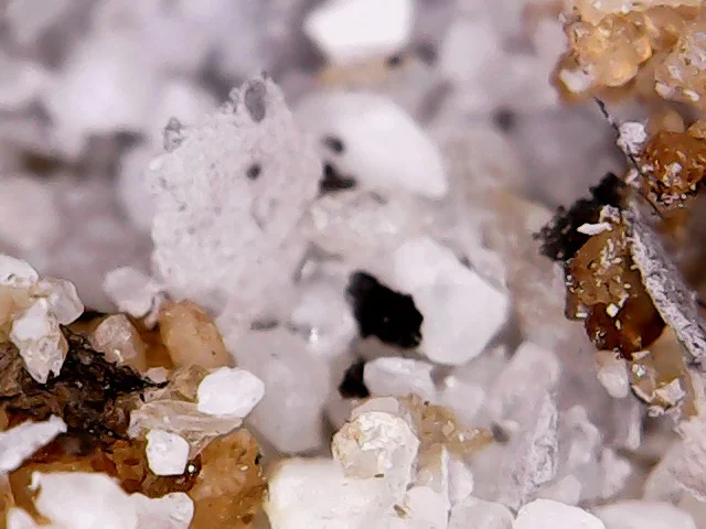 Sand and pigments under digital microscope
